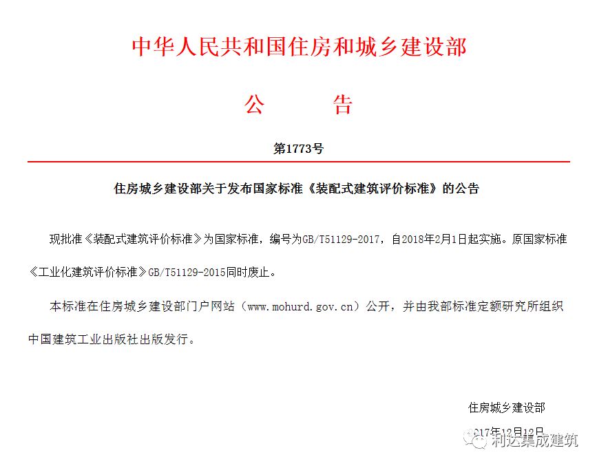 《装配式建筑评价标准》正式发布,新规定已来!自2018年2月1日起就要开始正式实施